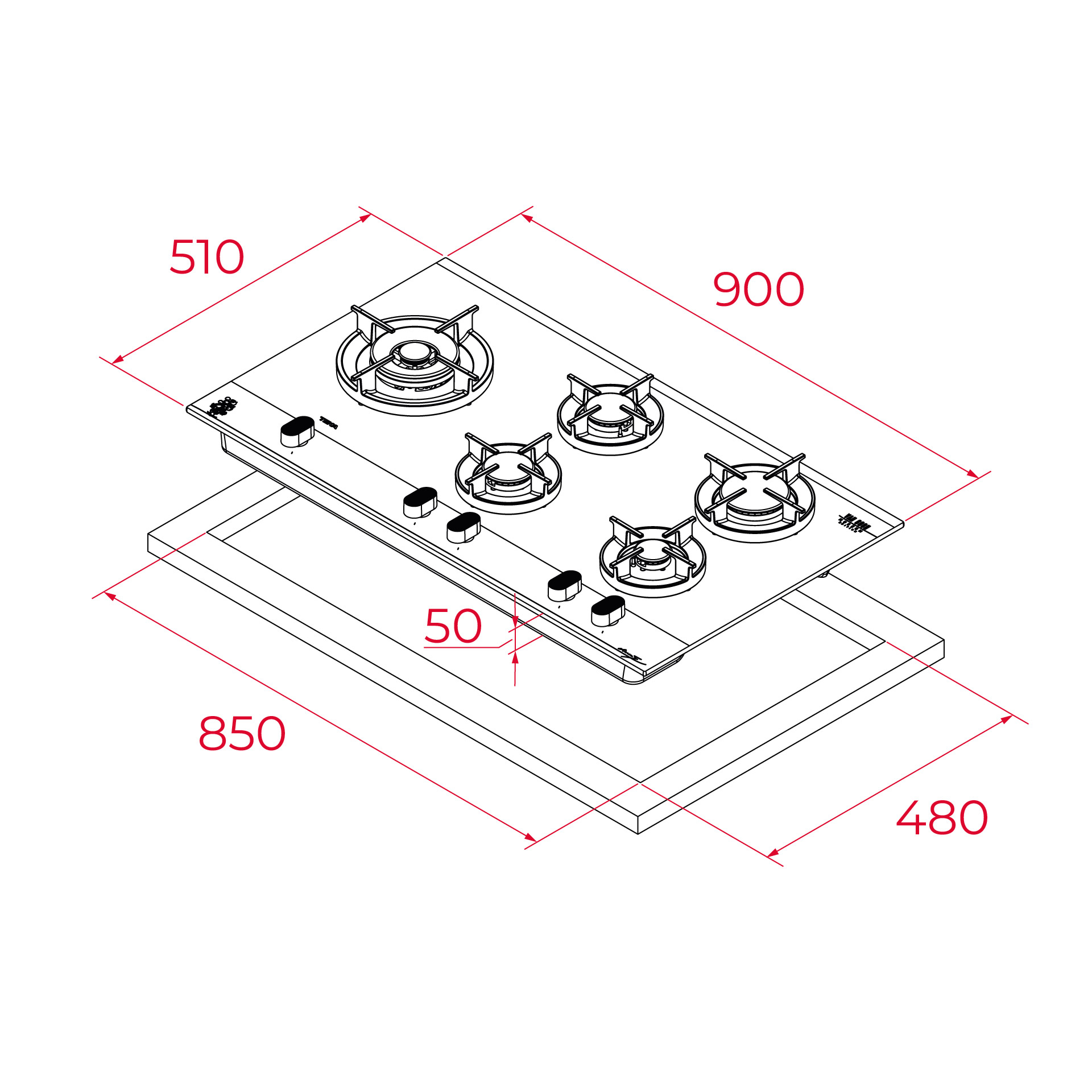 Инновационная система крепления с клипсами позволяет легко установить панель в столешницу без использования винтов. Устройство адаптировано для работы как с природным газом, так и с сжиженным (пропан/бутан).