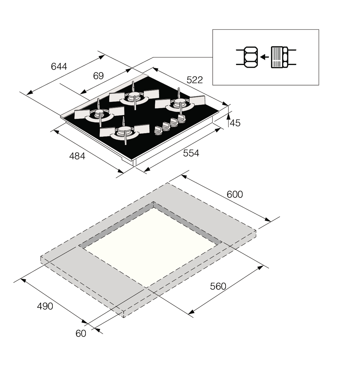 Газовая варочная панель на стеклокерамическом основании с четырьмя мощными конфорками A+. Варочная панель имеет плавную и быструю регулировку, благодаря которой вы всегда установите необходимую мощность для разных видов приготовления.