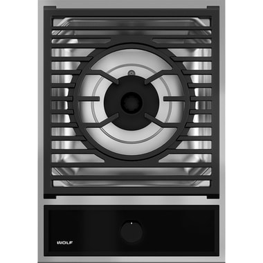 Фирменные поворотные переключатели Wolf обеспечивают плавную регулировку мощности пламени. Конструкция горелки позволяет использовать как круглое WOK-дно, так и стандартную посуду.