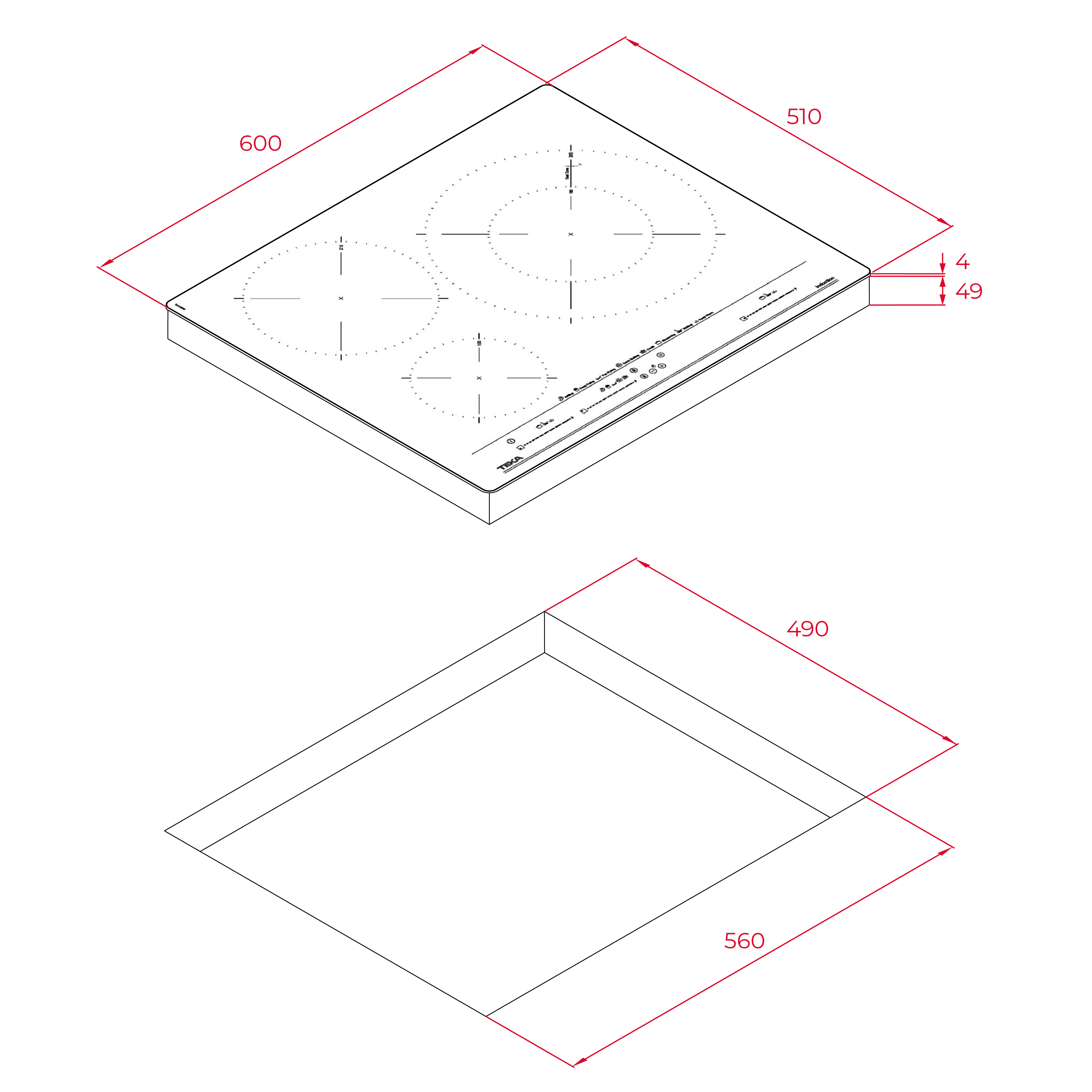 • Индикаторы остаточного тепла: включаются при температуре зоны нагрева выше 60°С