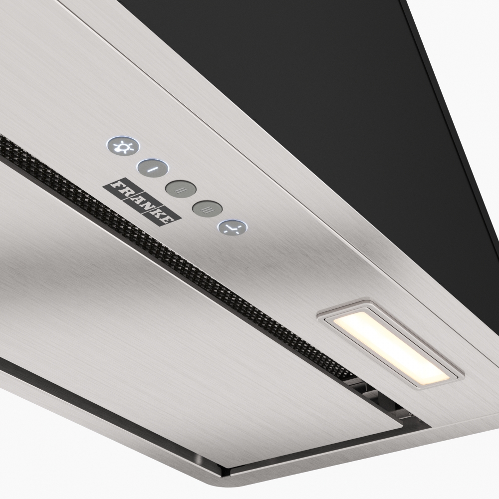 Встраиваемая вытяжка Franke Vera c производительностью 1000 м3/ч таймером остаточного хода и технологией периметрального всасывания.