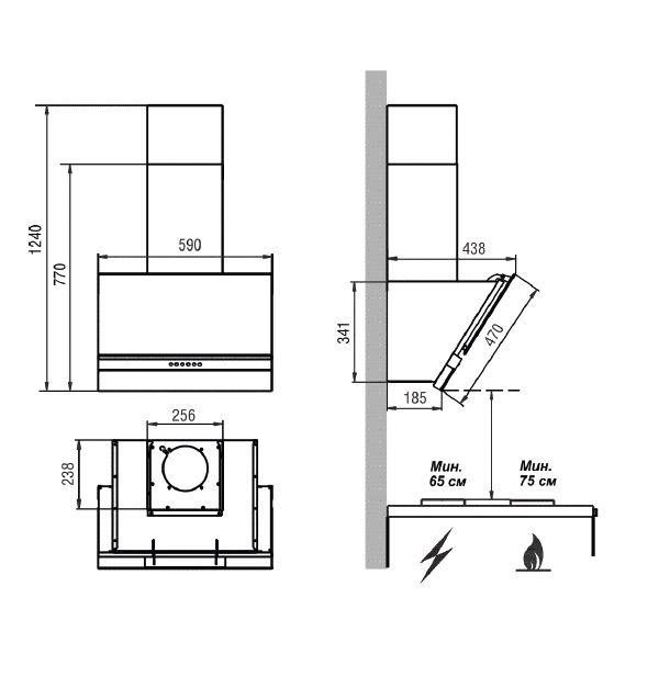 Рекомендуемая высота расположения над электрической плитой, см