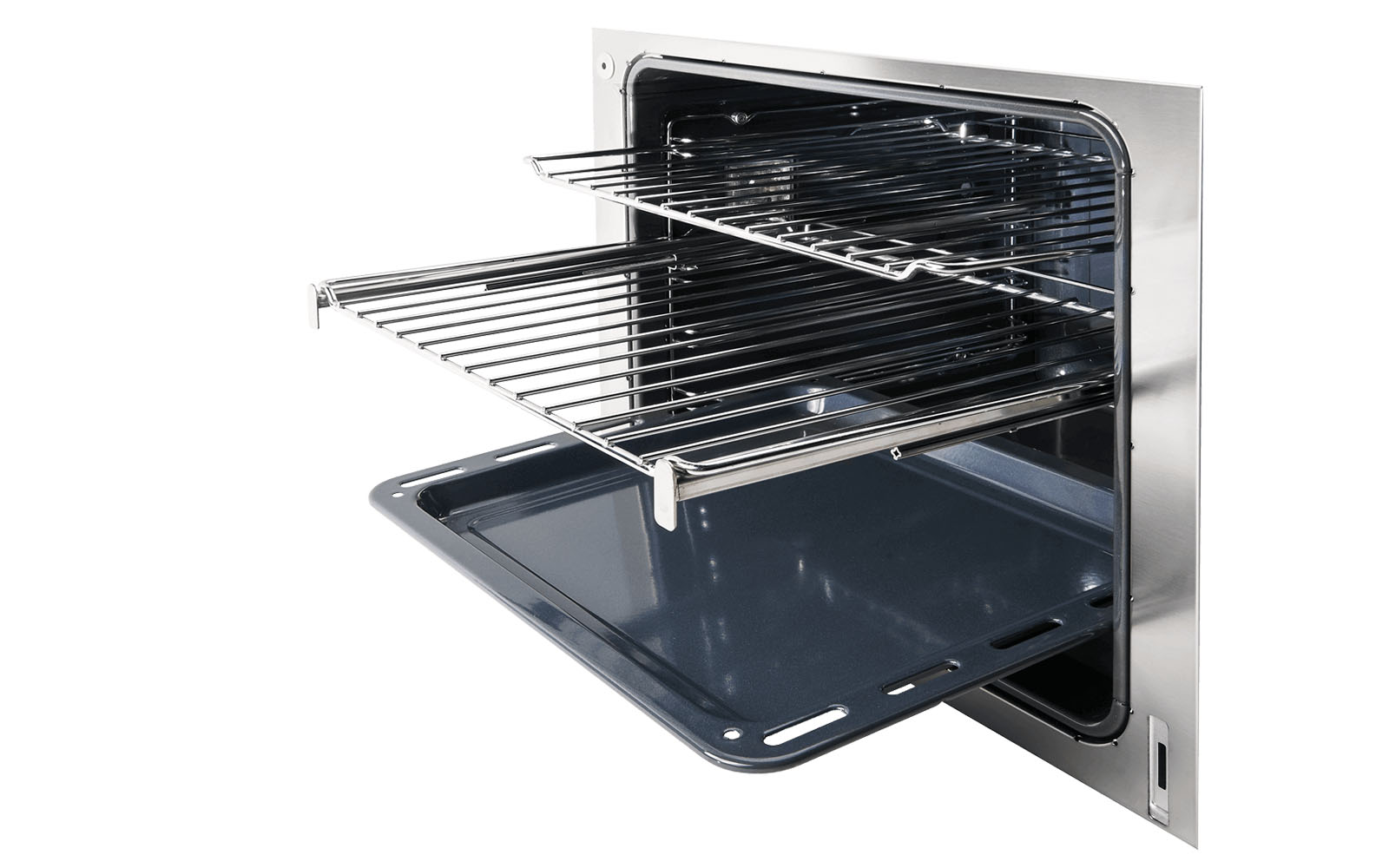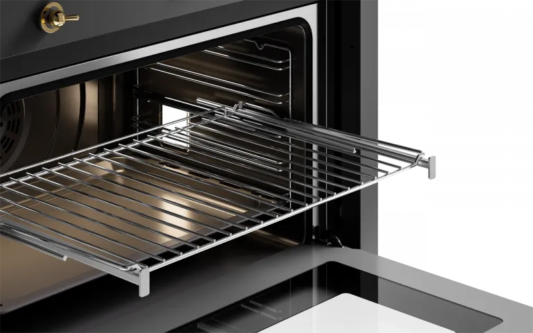 Пара телескопических направляющих. Комплект состоит из пары боковых направляющих, которые полностью выдвигаются, не опрокидываются и совместимы со стандартным поддоном и решетками в духовке. Возможна установка до трех пар на 1-й, 2-й и 4-й уровень, начиная снизу.