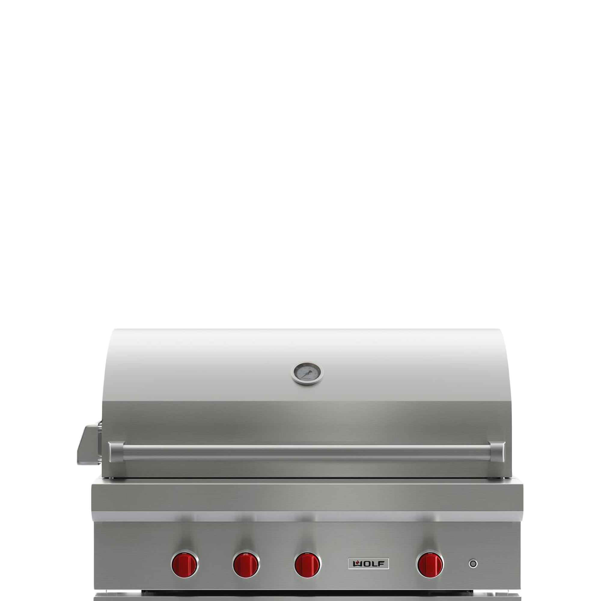 Подобно аналогичным грилям для использования дома газовые грили Wolf для использования вне помещения сохраняют те же характеристики элементов, изготовленных из высокопрочной стали. Данный гриль шириной 1067 мм имеет мощные конфорки через каждые 127 мм