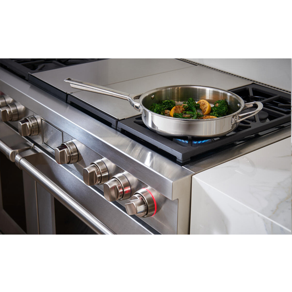 Кухонный блок ICBDF48450CG выполнен из прочной, высококачественной нержавеющей стали, укомплектован удобной цилиндрической ручкой. Переключатели управления могут быть выполнены в трёх цветах: фирменном красном, чёрном либо стальном. Благодаря такому стилистическому решению, ICBDF48450CG создаёт целостные образы как частных, так и профессиональных кухонных зон, прекрасно сочетаясь со всей линейкой приборов Sub-Zero/Wolf.