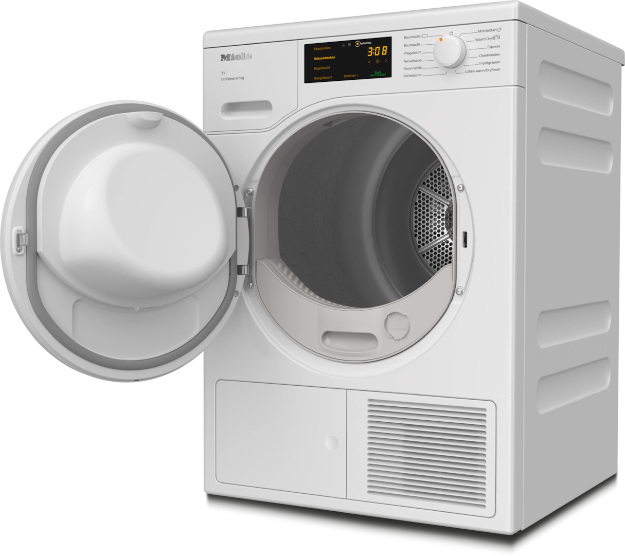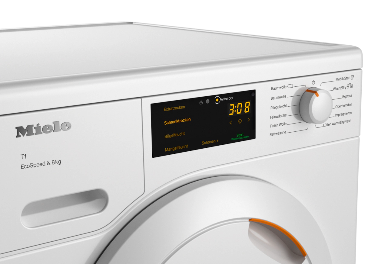 Сушильная машина с тепловым насосом T1: с A+++ и EcoSpeed для более быстрой сушки и максимальной энергоэффективности.