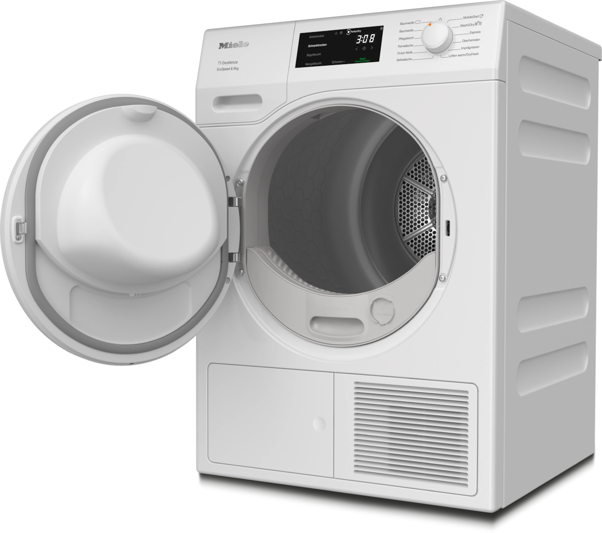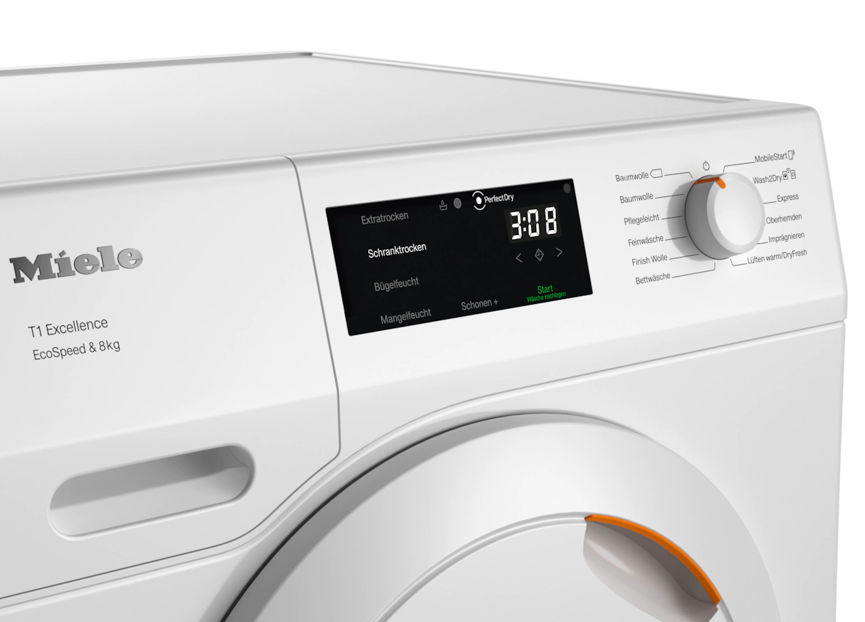 Сушильна машина с тепловым насосом T1: с A+++ и EcoSpeed ​​для более быстрой сушки и максимальной энергоэффективности.