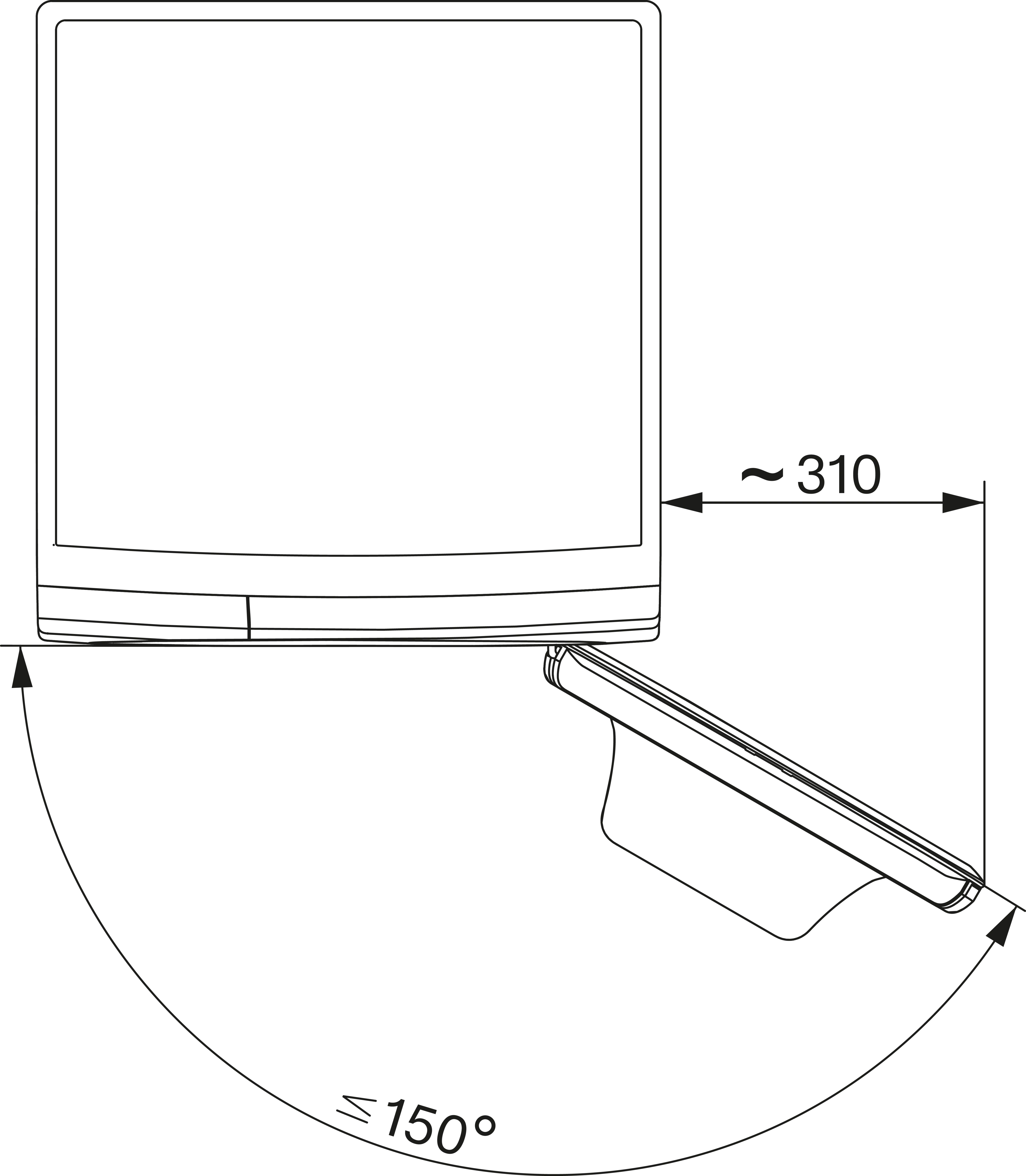 Глубина с открытой дверцей, мм