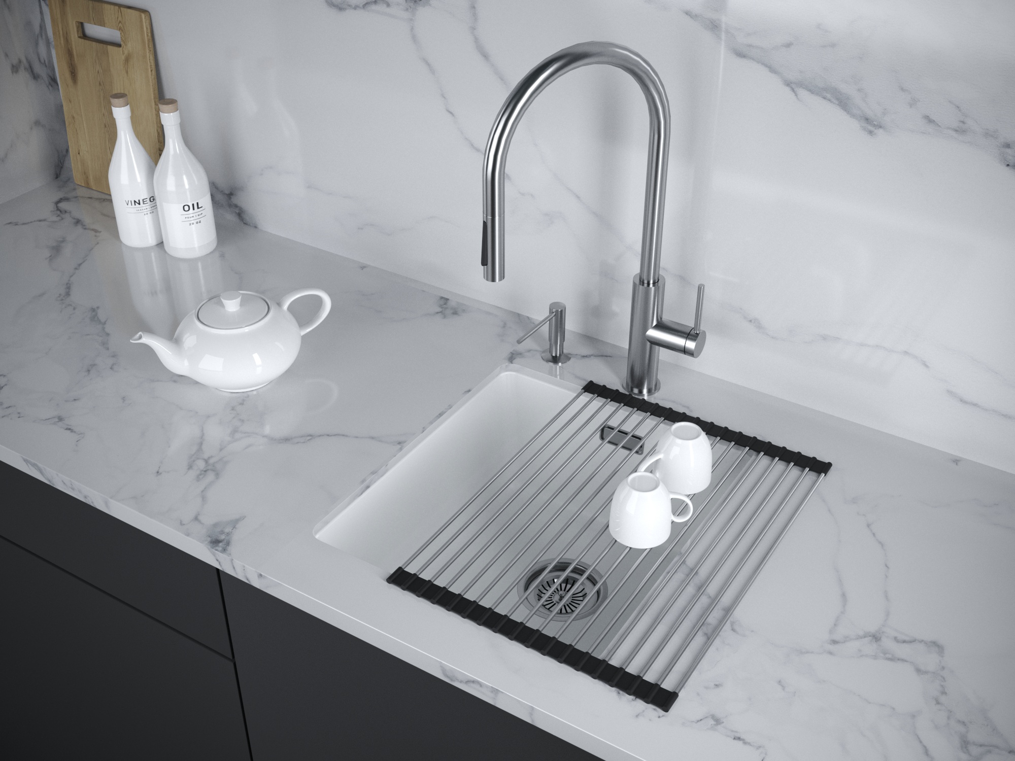 Мойка создана как для современного способа монтажа под столешницу, так и для классического врезного монтажа.