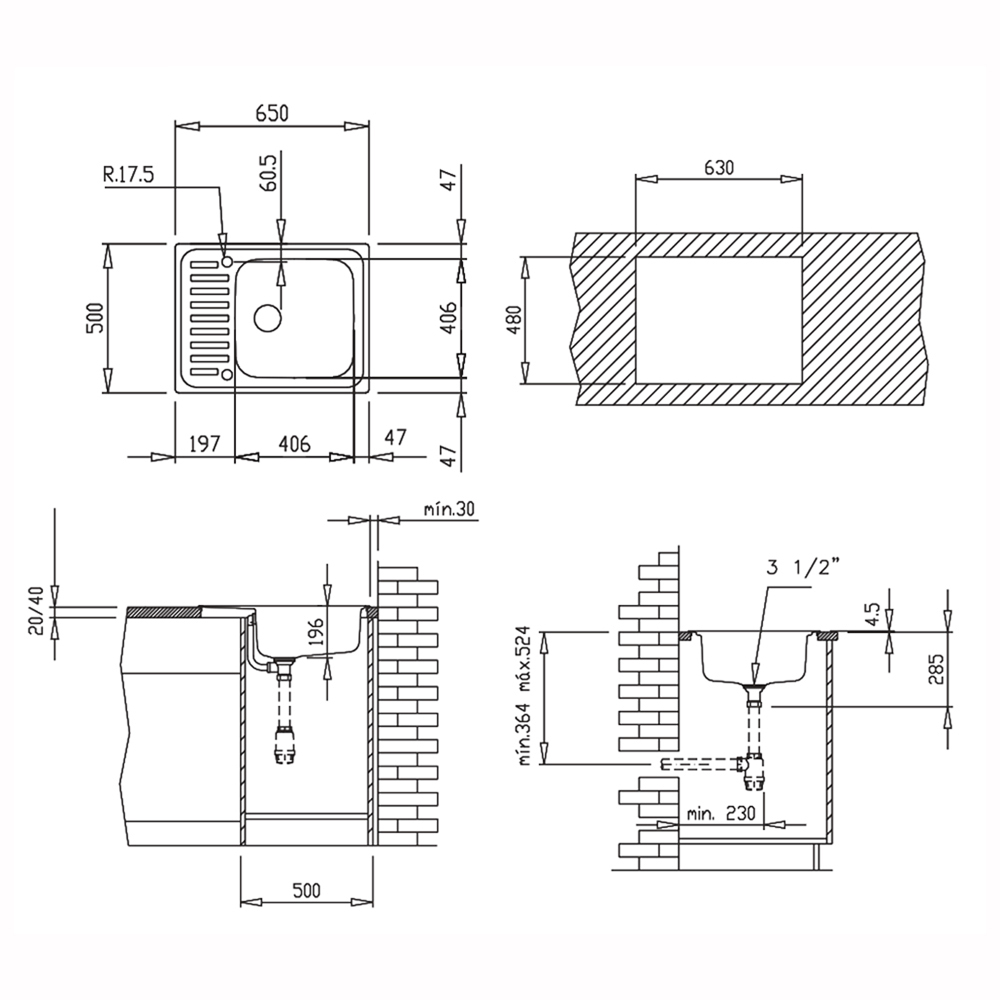 • Способ монтажа: монтаж сверху (врезная)