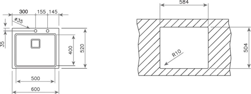 • Внешние размеры: 600 x 520 мм