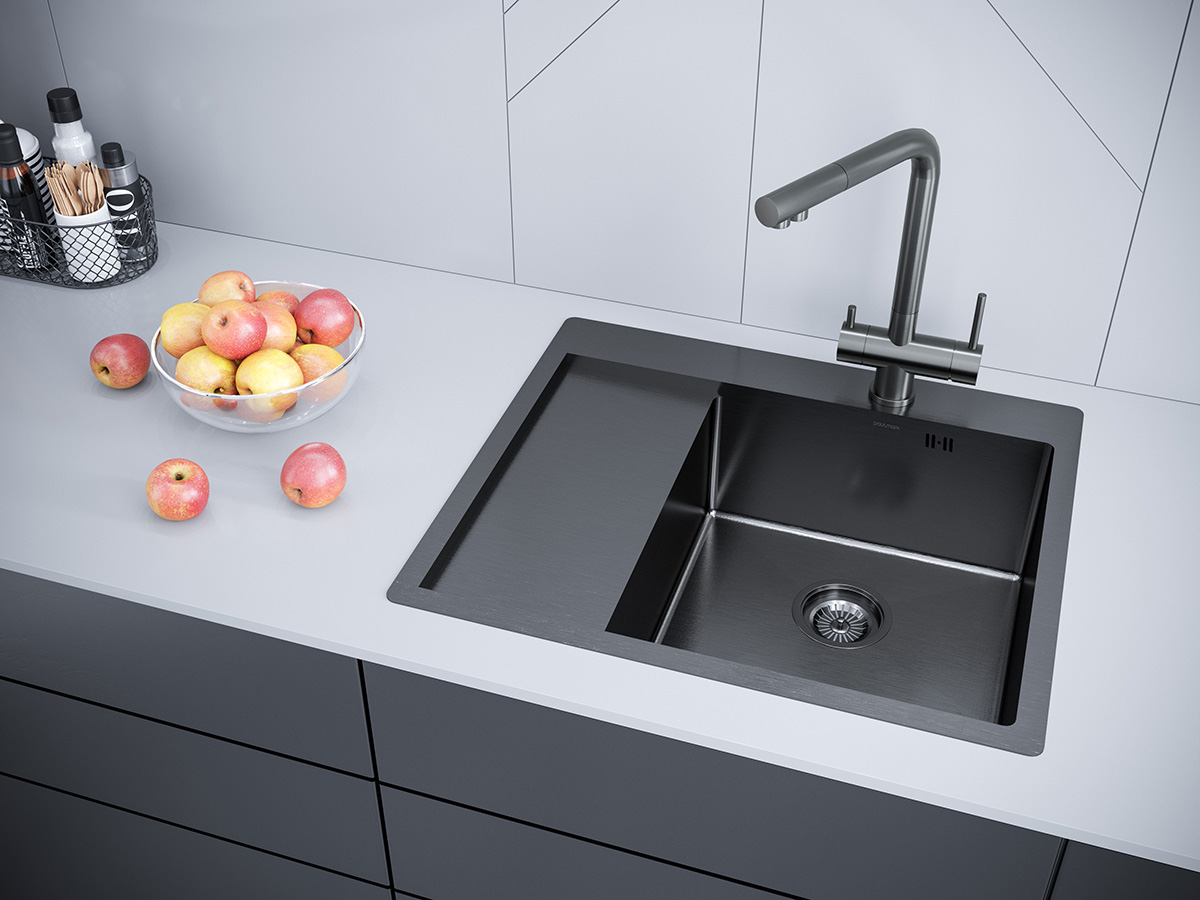 PVD покрытие моек Paulmark в цветах воронёная сталь / брашированное золото (GM / BG) является экологически чистым. Особый метод напыления покрытия путём прямой конденсации пара наносимого материала позволяет поверхности мойки быть особенно устойчивой к появлению царапин и истиранию. Такое покрытие является защитным слоем, оно чрезвычайно плотно и равномерно прилегает к основе, не содержит микротрещин.