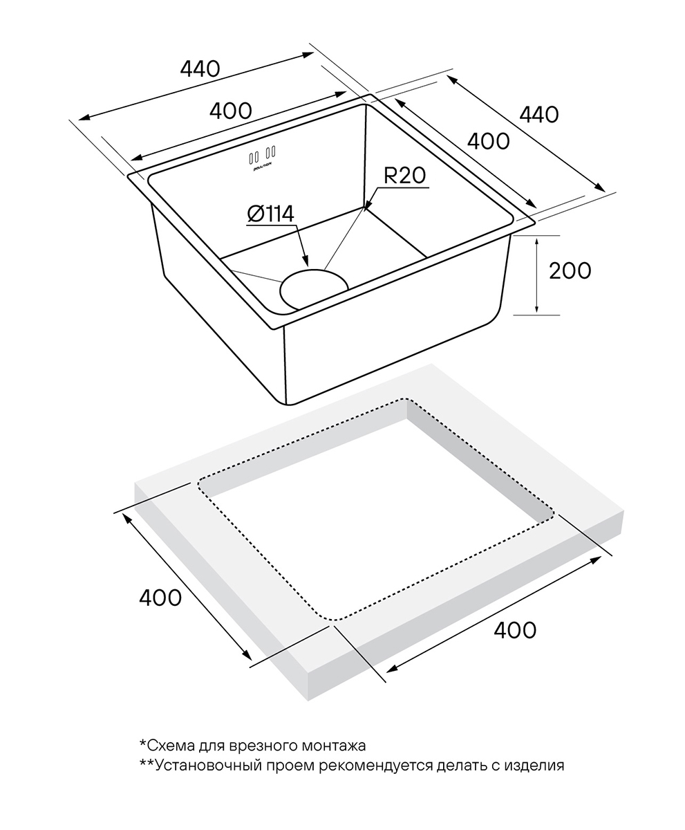 Кухонная мойка бренда Paulmark VISTA 44, изготовленная из нержавеющей стали AISI 304.