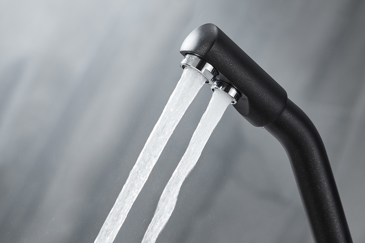 предусматривает поступление фильтрованной воды, которая не смешивается с водопроводной. Питьевая вода подается через отдельные трубку и аэратор, а для регулирования питьевой воды предусмотрена отдельная ручка.