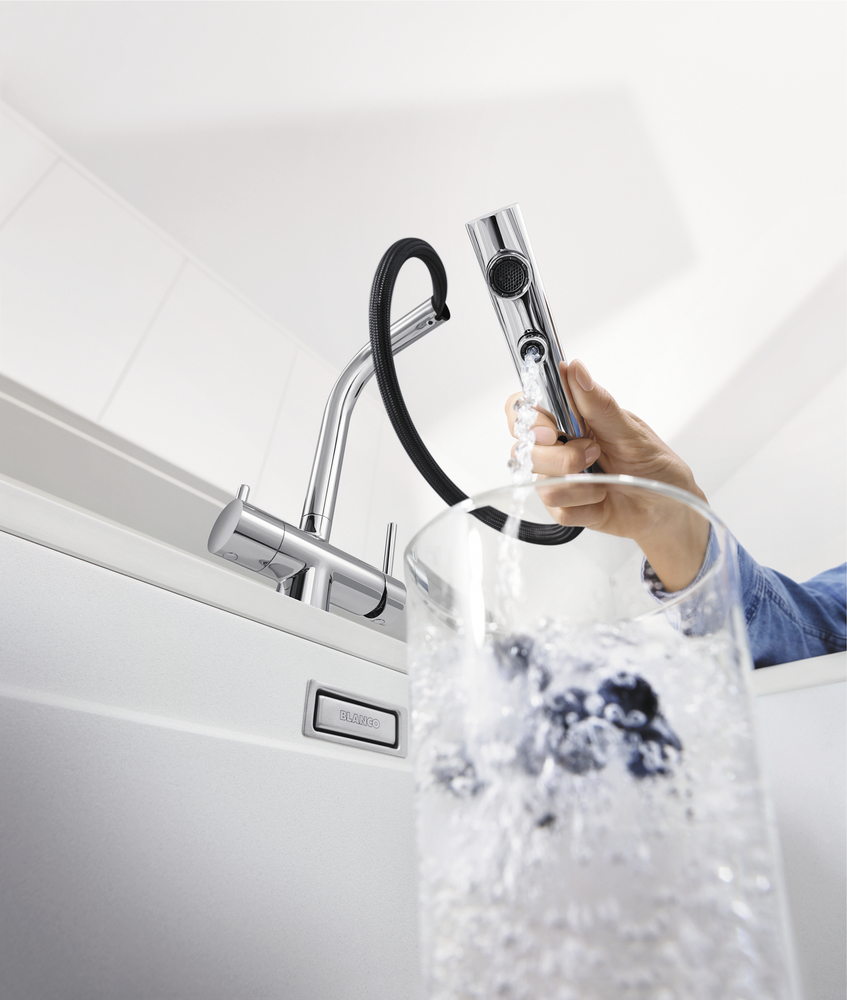 Смеситель с подключением фильтра FONTAS-S II 525198 от Blanco воплощает философию бескомпромиссного качества, инновационного дизайна и функциональности, превращая самое активное место на кухне в продуманный, эргономичный и эстетичный центр для приготовления пищи.