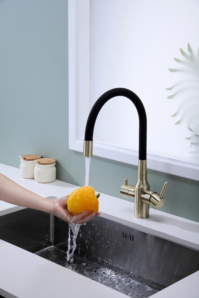 Смеситель для кухни SALIX c возможностью подключения системы фильтрации питьевой воды изготовлен из высококачественной латуни, которая отвечает высочайшим европейским стандартам качества, не содержит свинца, не разрушается со временем и безопасна для здоровья.